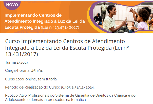 Curso: Implementando Centros de Atendimento Integrado à Luz da Lei da Escuta Protegida (Lei nº 13.431/2017)