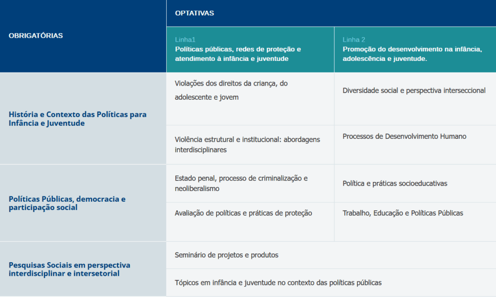 QUADRO DE DISCIPLINAS DO PPGPPIJ – (3 Créditos; 45 horas/aula)